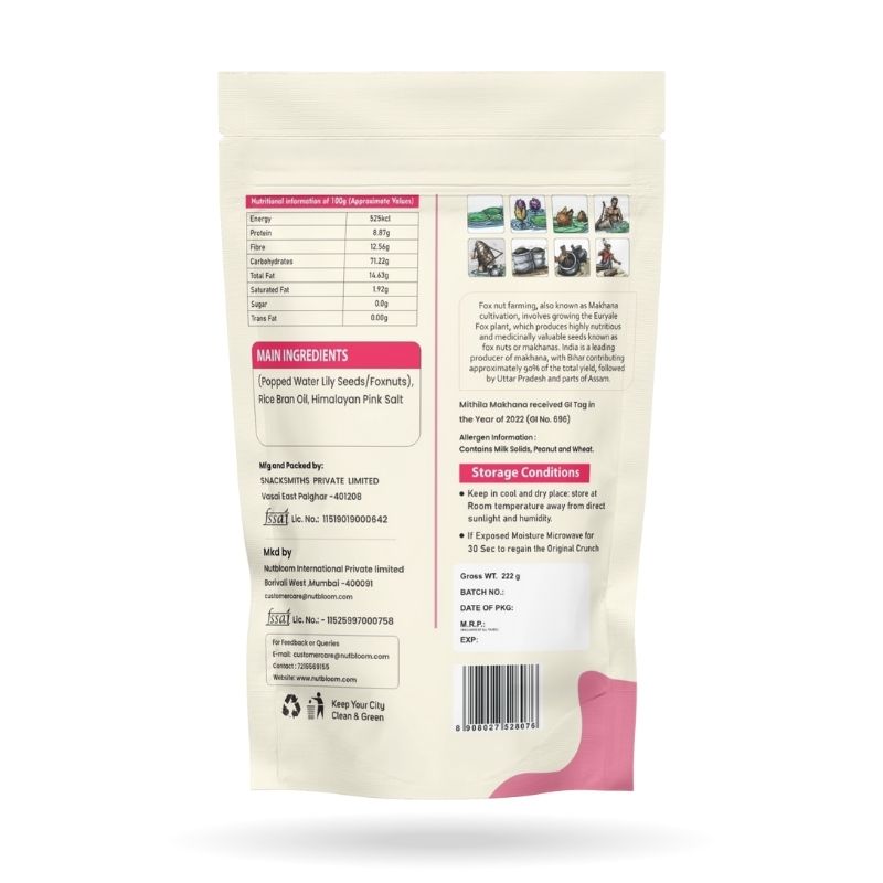 Nutbloom ka Himalayan Salt Makhana is a simple and pure snack, made from lightly roasted fox nuts seasoned with mineral-rich Himalayan pink salt. It’s the perfect guilt-free treat—a healthy, crunchy, and delightfully clean bite for any time of the day.